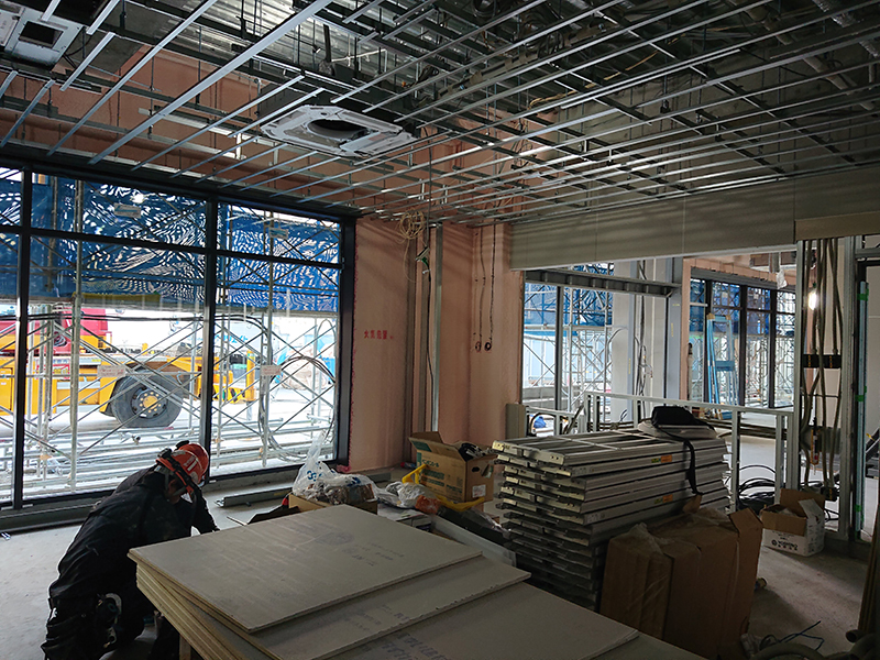 ボード施工は軽天工事後、仕上げに石膏ボードを貼りつける作業を行います。